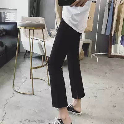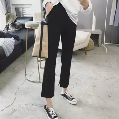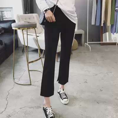 Micro-flared pants women's summer retro high waist black split suit pants slim slim casual pants nine-point cigarette tube pants