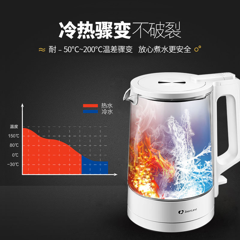 American Zhulan Kettle Kettle electric kettle household transparent glass kettle insulation integrated stainless steel automatic power cut