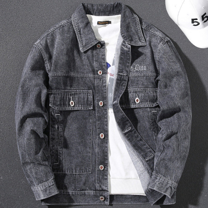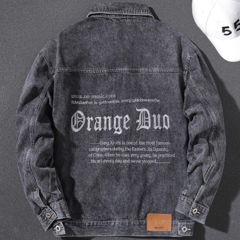 Handsome 2021 Original Gradual Layer Washing water Decorative Embroidery Design Spring Autumn Autumn Winter Trend Denim Jacket Jacket Man