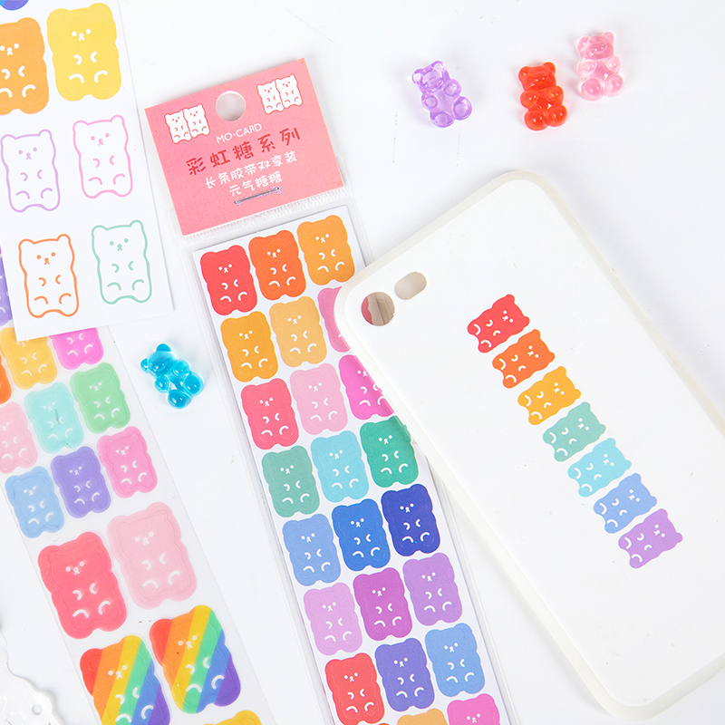 Rainbow Sugar Double Enjoy Material Strip Adhesive Tape Split DIY hand ledger collared copper version paper hand ledger decoration PVC stickers