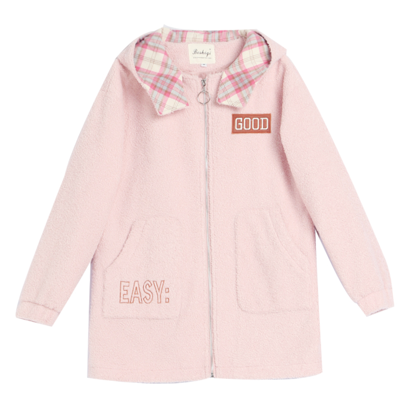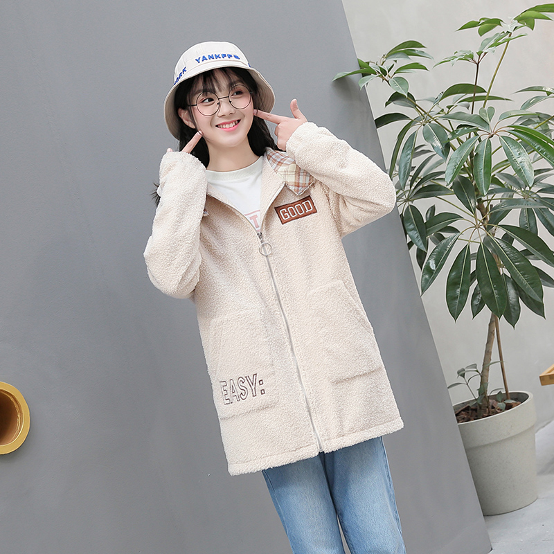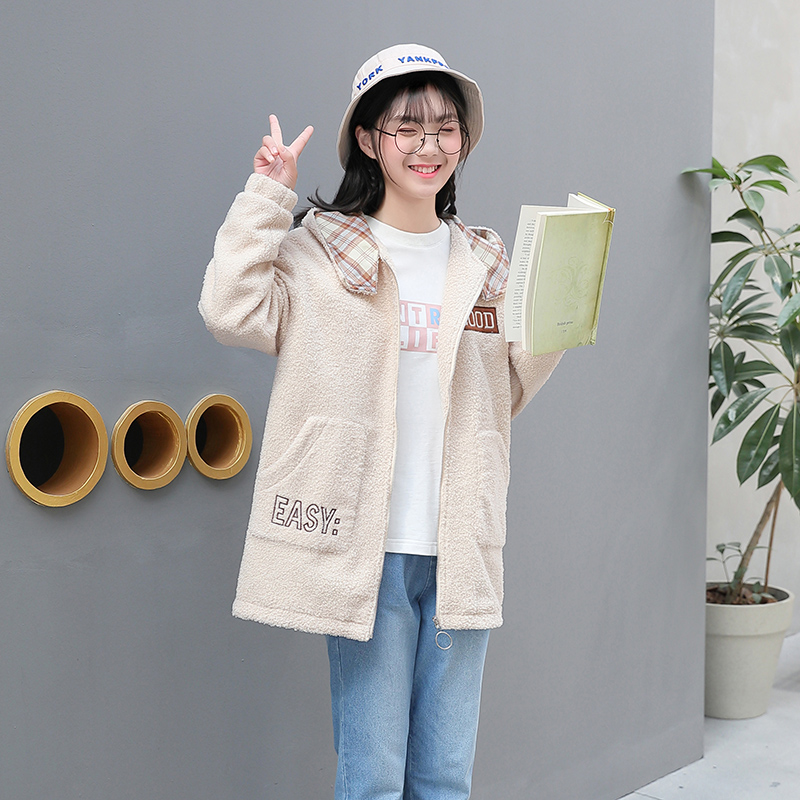 Teenage Girl Coats Women's Spring Autumn Clothing With Long Version Loose Even Hat Junior High School Students' Plush Alphabet High Middle School Raw Blouse