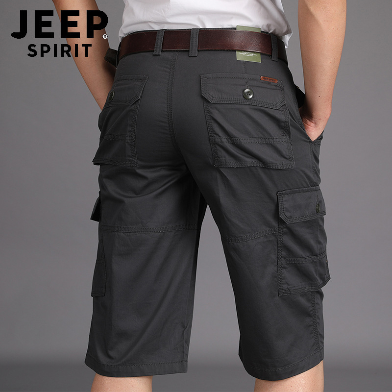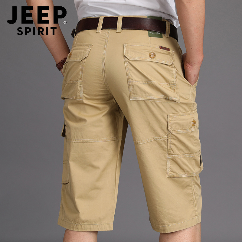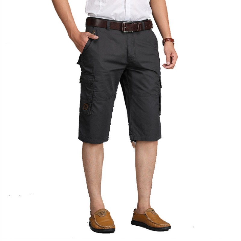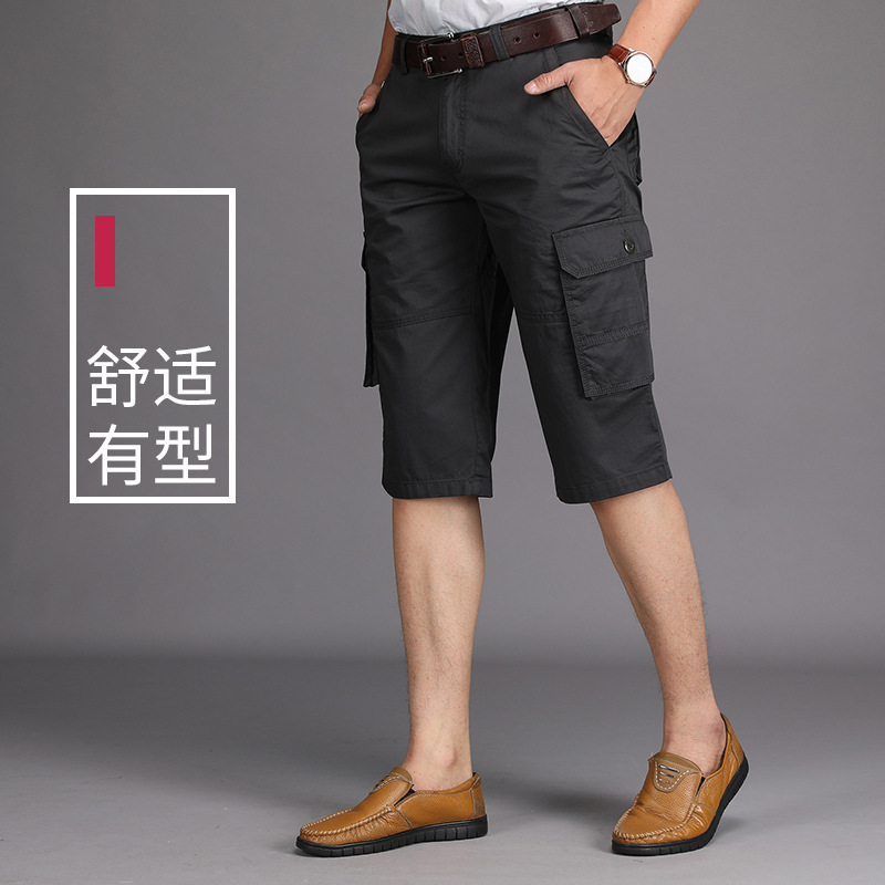 Brand high-end quality men's pants 22 summer young and middle-aged men's multi-pocket overalls pure cotton loose casual cropped pants