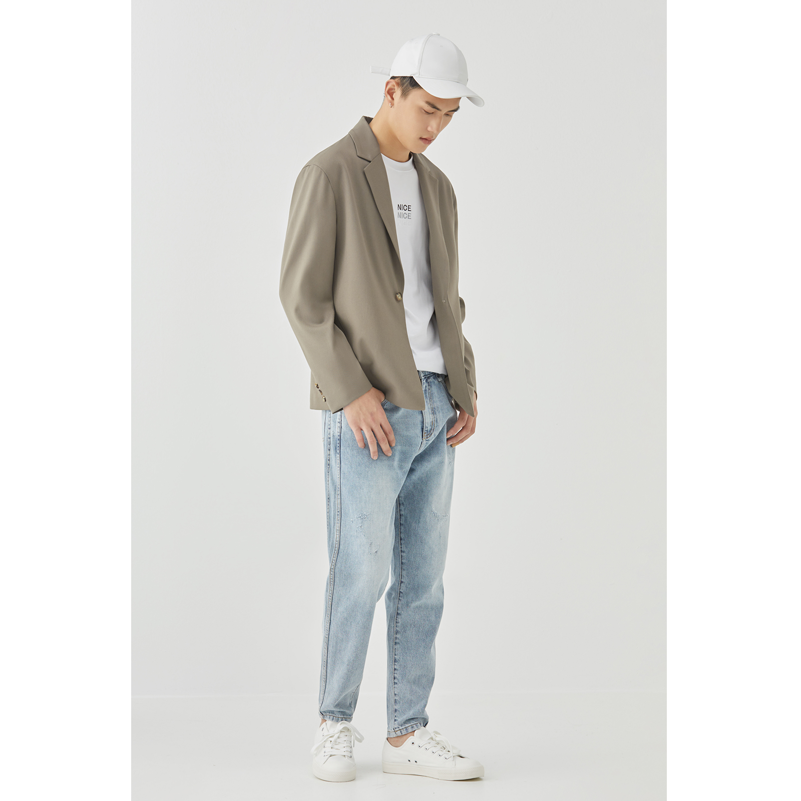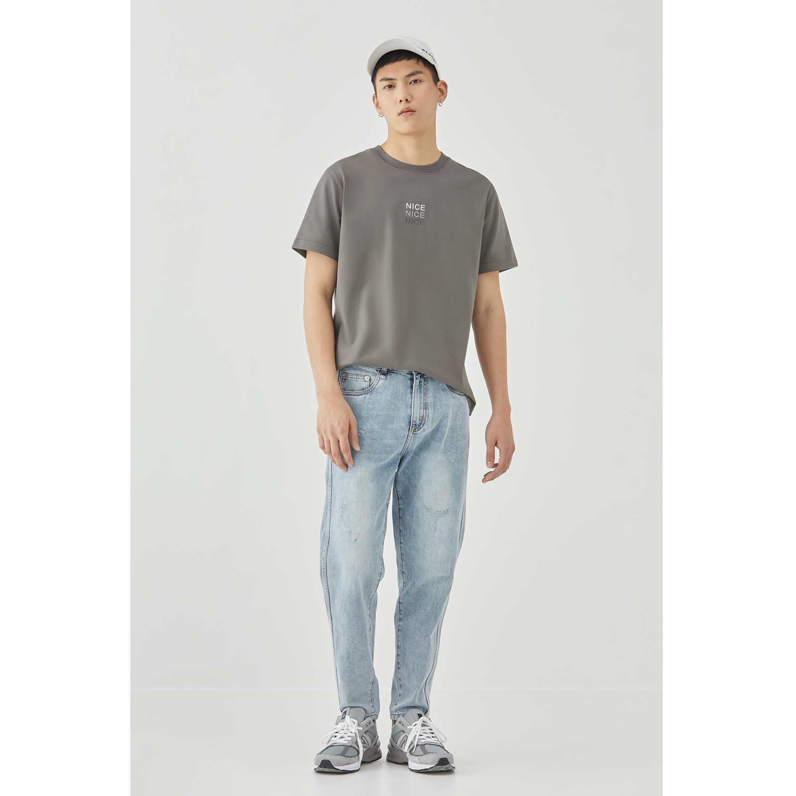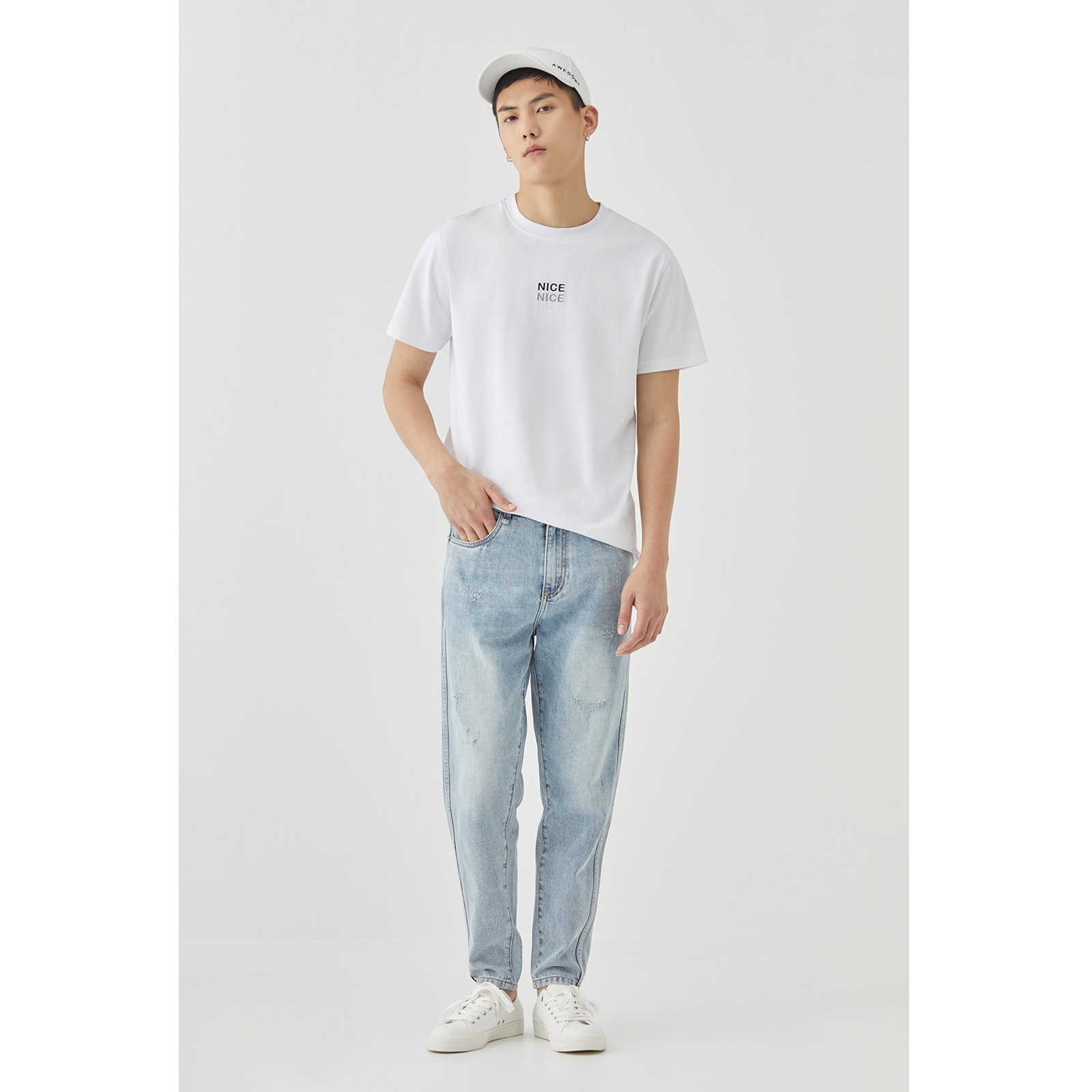 (Storage grid)Old ripped jeans men's light blue casual pants thin loose straight pants summer men's pants