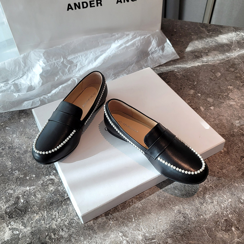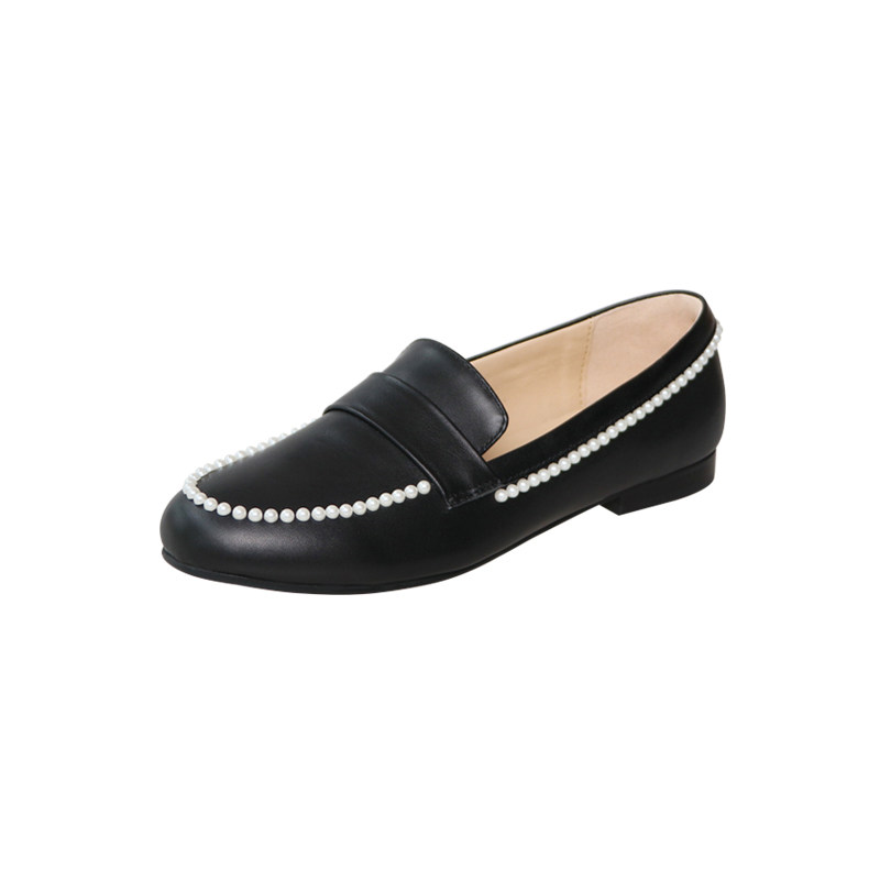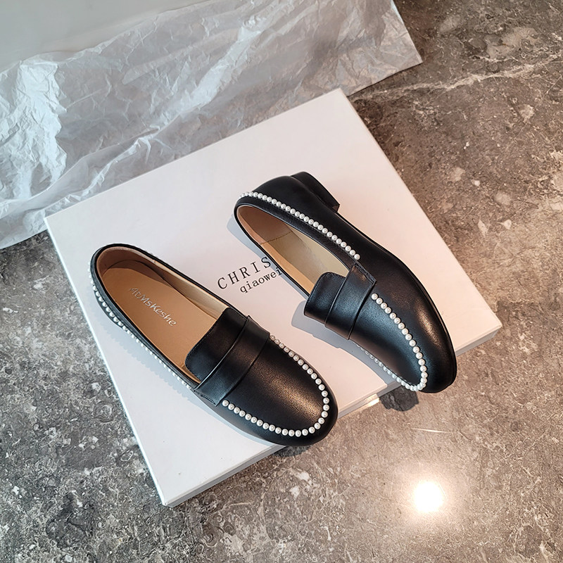 Small Leather Shoes 2020 Spring Fall New small Fragrant Wind leather One Foot Pedal Sloth Flat Bottom Pearl Lefu Shoes Women Single Shoes