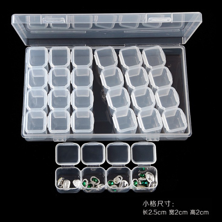 Nail drill box Nail tools alloy drill storage box nail art rhinestone jewelry box 28 grid plastic transparent jewelry box