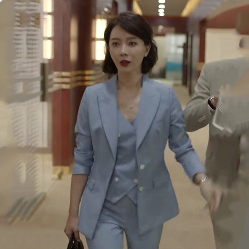 Chen Shuxing with the same spring and autumn blue Korean suit female professional OL suit suit vest nine-point pants three-piece suit
