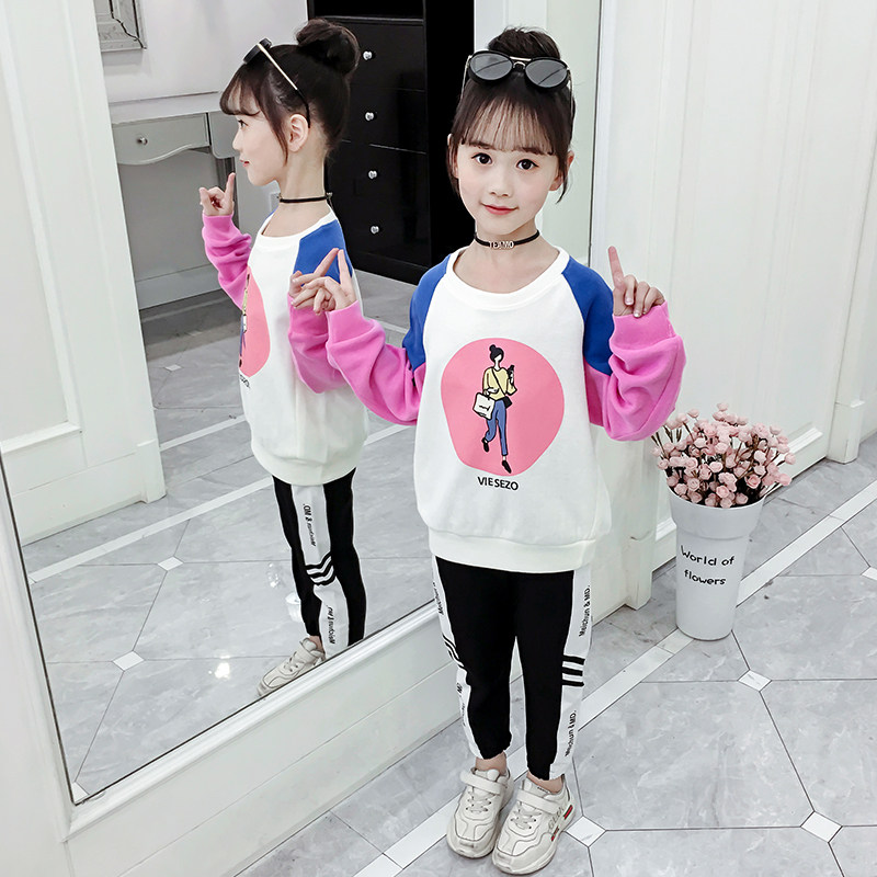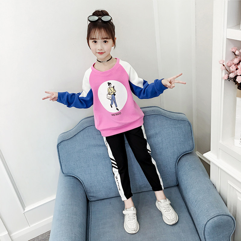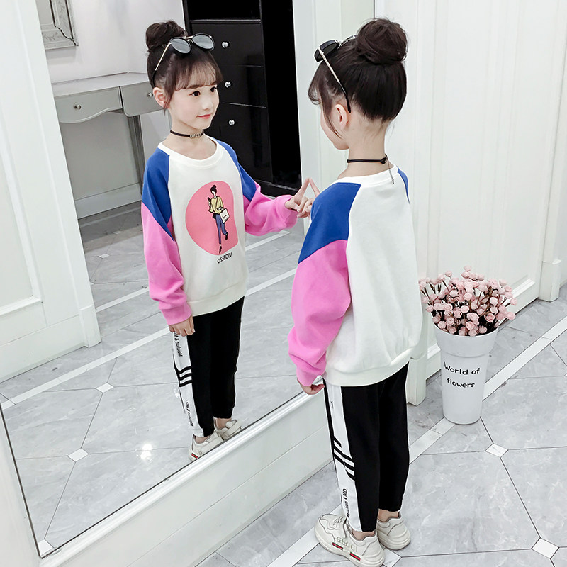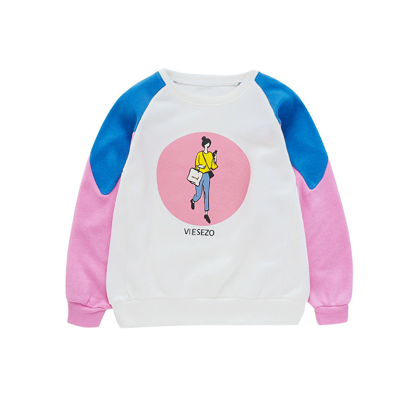 Girls thick T-shirt 2021 new autumn children's Western style pullover girl letter T-shirt top hit color bottoming shirt