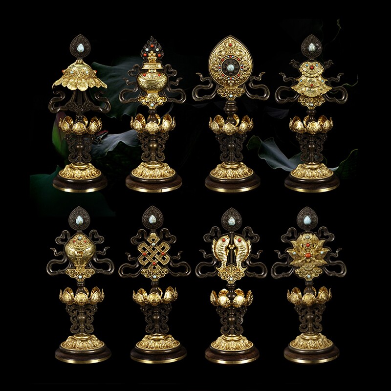 Nepali Crafts Pure Copper Plus Purple Sandalwood Base Wheel King Seven Treasures Seven Zheng Bao Set of Mizong Forbidden Treasures for the Pink