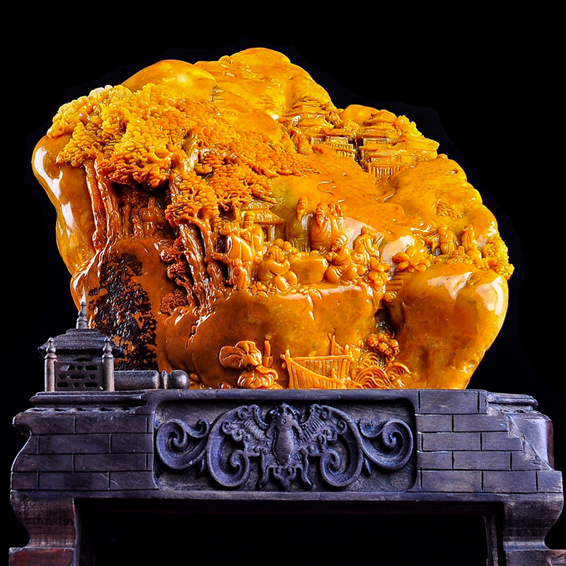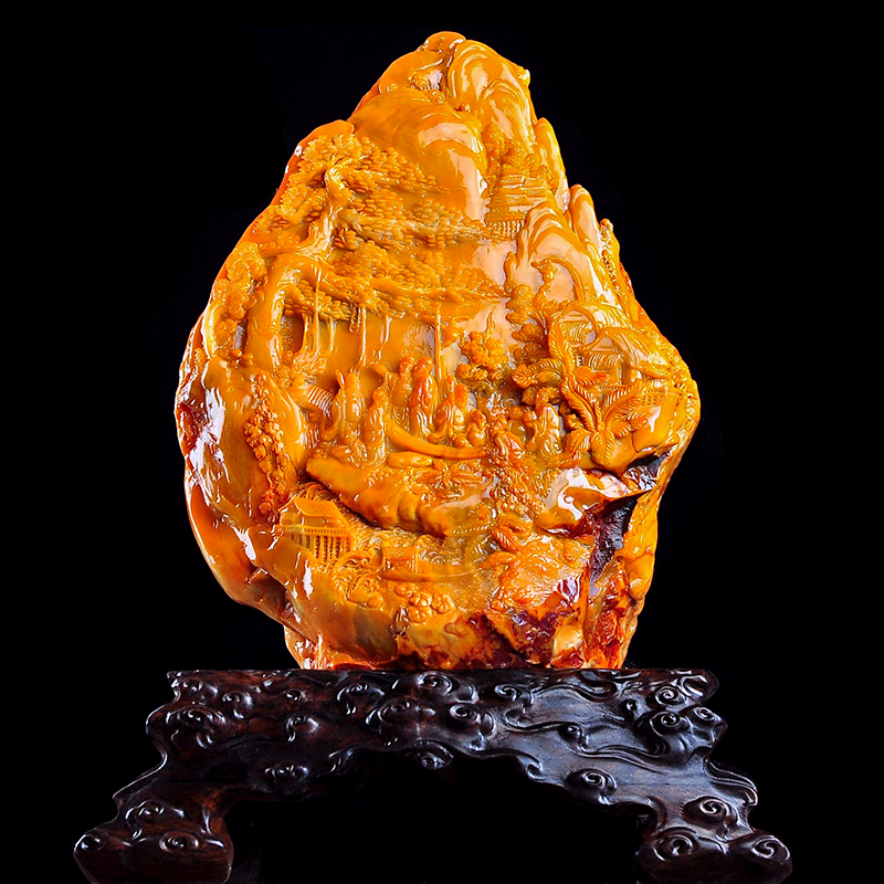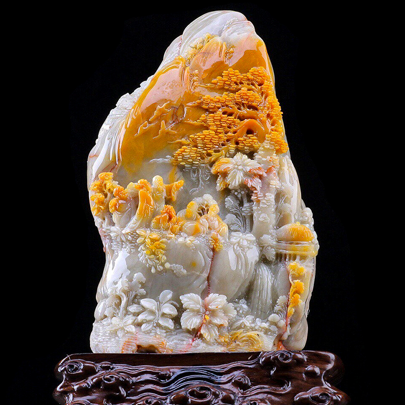 Fujian Shoushan stone landscape theme Gold frozen stone Gold stone seal carving Jade Stone Qishi Furong hand carving collection