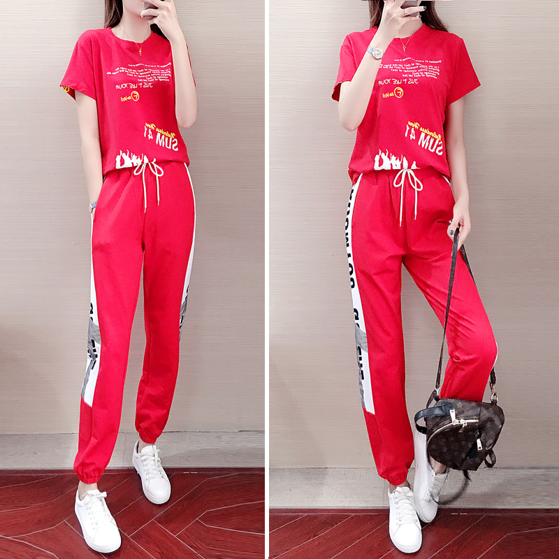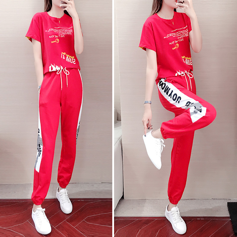 Sports Casual Suit Women's Summer 2022 New Korean Version Fashion Trends Easing of the Thin Ocean and Running Two Sets Tide