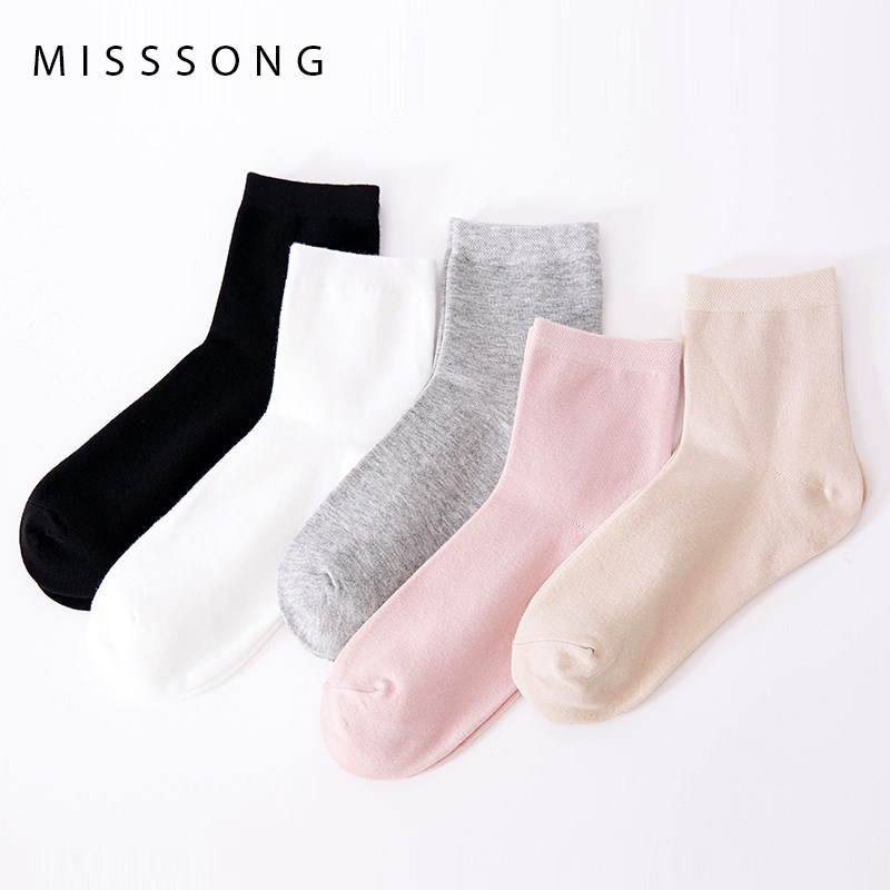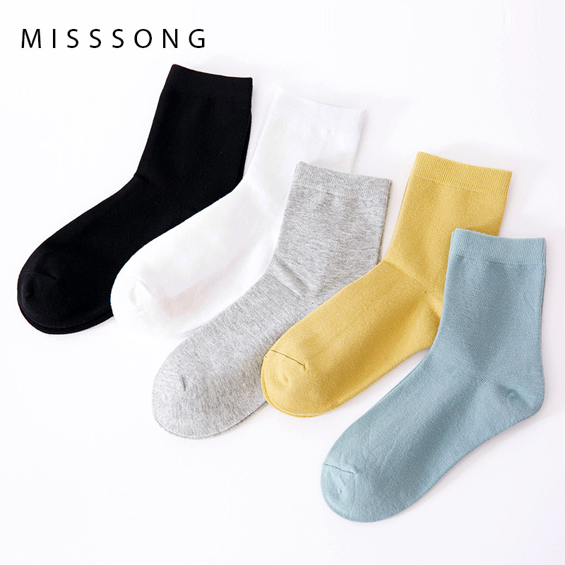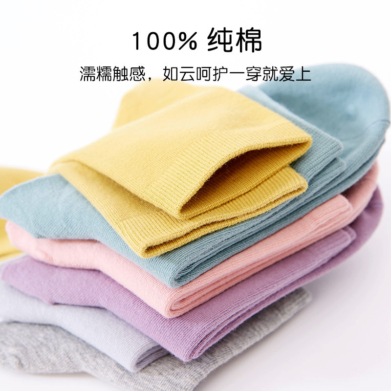 Socks women's mid-tube cotton spring and autumn cute Japanese women's solid color 100% cotton socks Sweat-absorbing deodorant four-season stockings