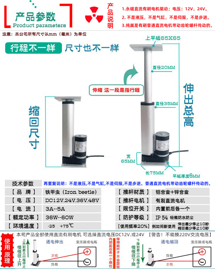 Electric push rod large thrust 220V one drag two electric cylinder industrial push rod motor lifter electric telescopic rod