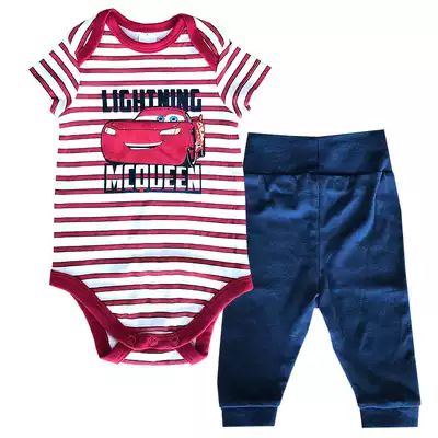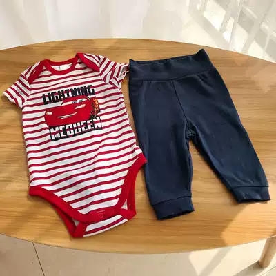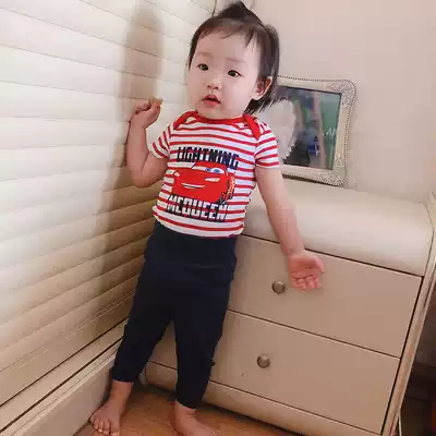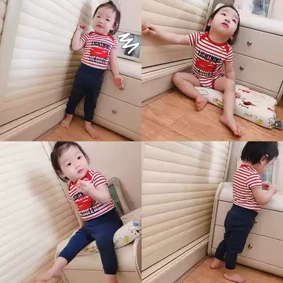Baby two-piece baby triangle climbing suit high waist trousers belly protection children's short sleeve jumpsuit spring and summer suit