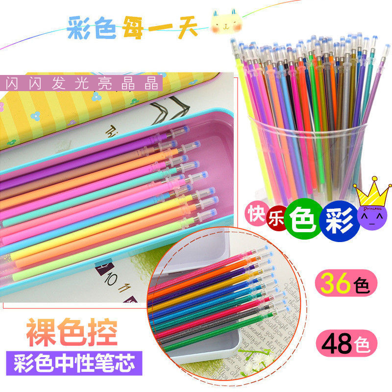 Silent flash refill 12 colors 36 colors 48 colors color DIY hand account gel pen refill fluorescent refill flash color core gouache gouache bullet creative color neutral refill student graffiti painting