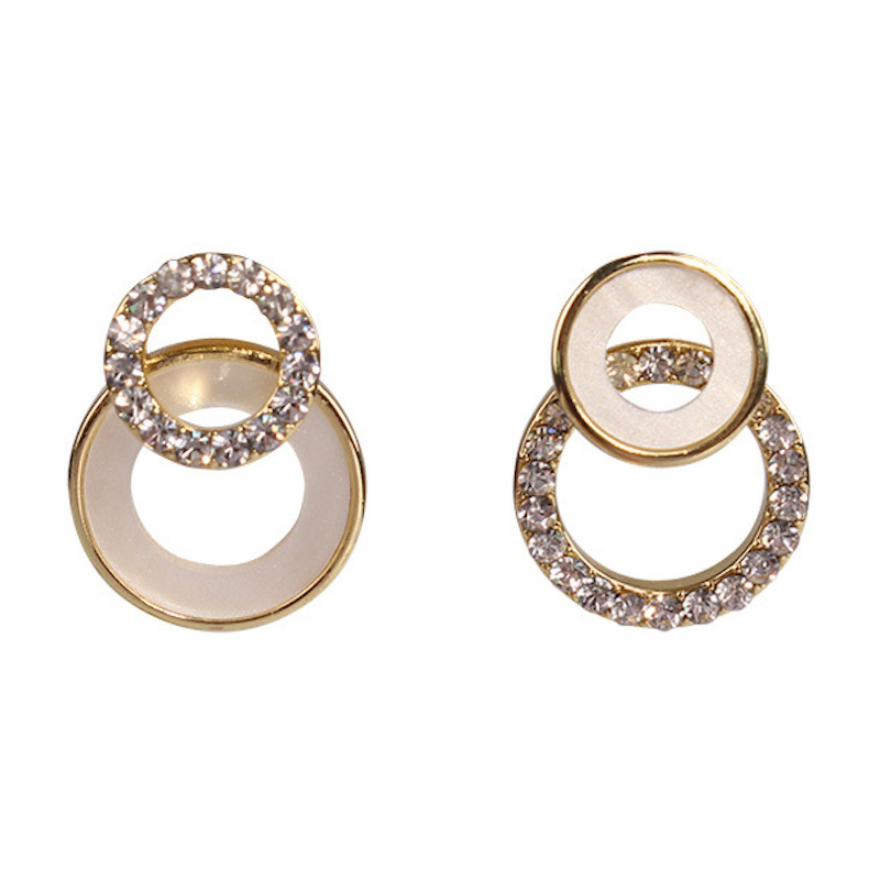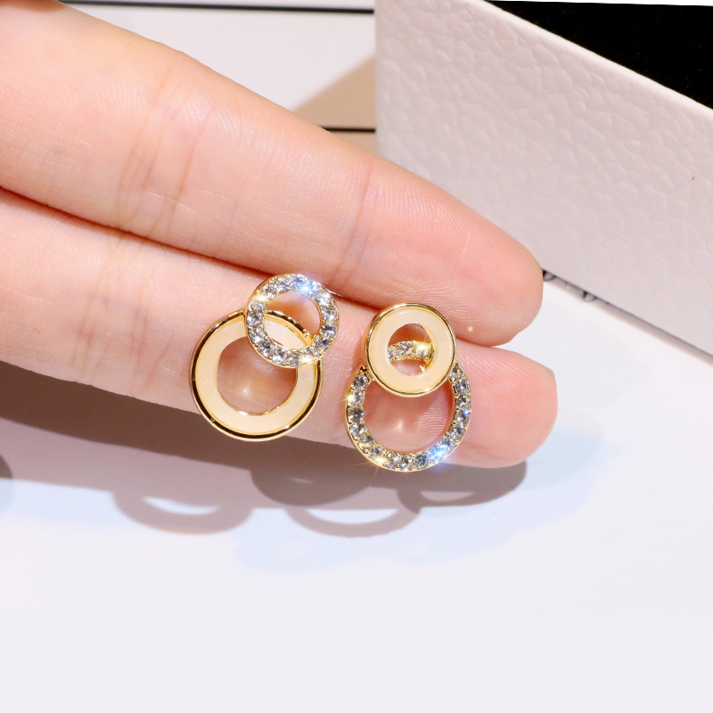 2021 New double ring with drilled ear nails 925 silver needle Korean temperament network red earrings with simple one - round earrings