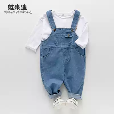 Baby baby baby bag pants spring and autumn male 1-3 years old boy denim trousers soft thin cotton baby pants foreign style tide