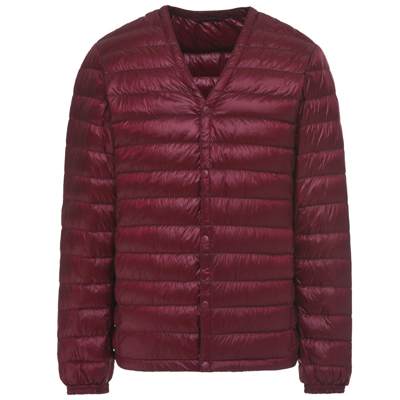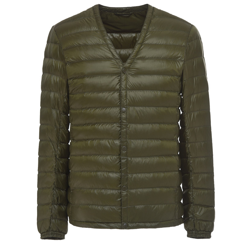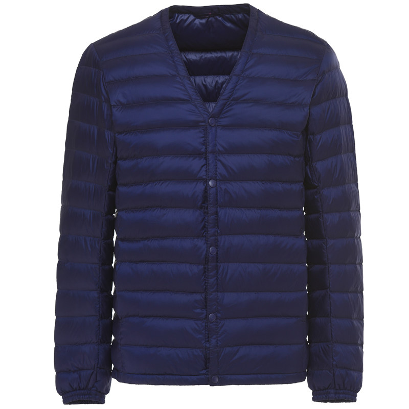 Collar-free down inside Autumn and winter light down jacket male dad wears V-neck middle-aged coat lightweight ultra-thin section