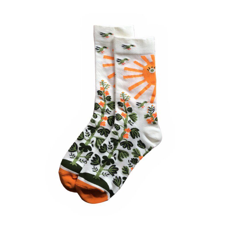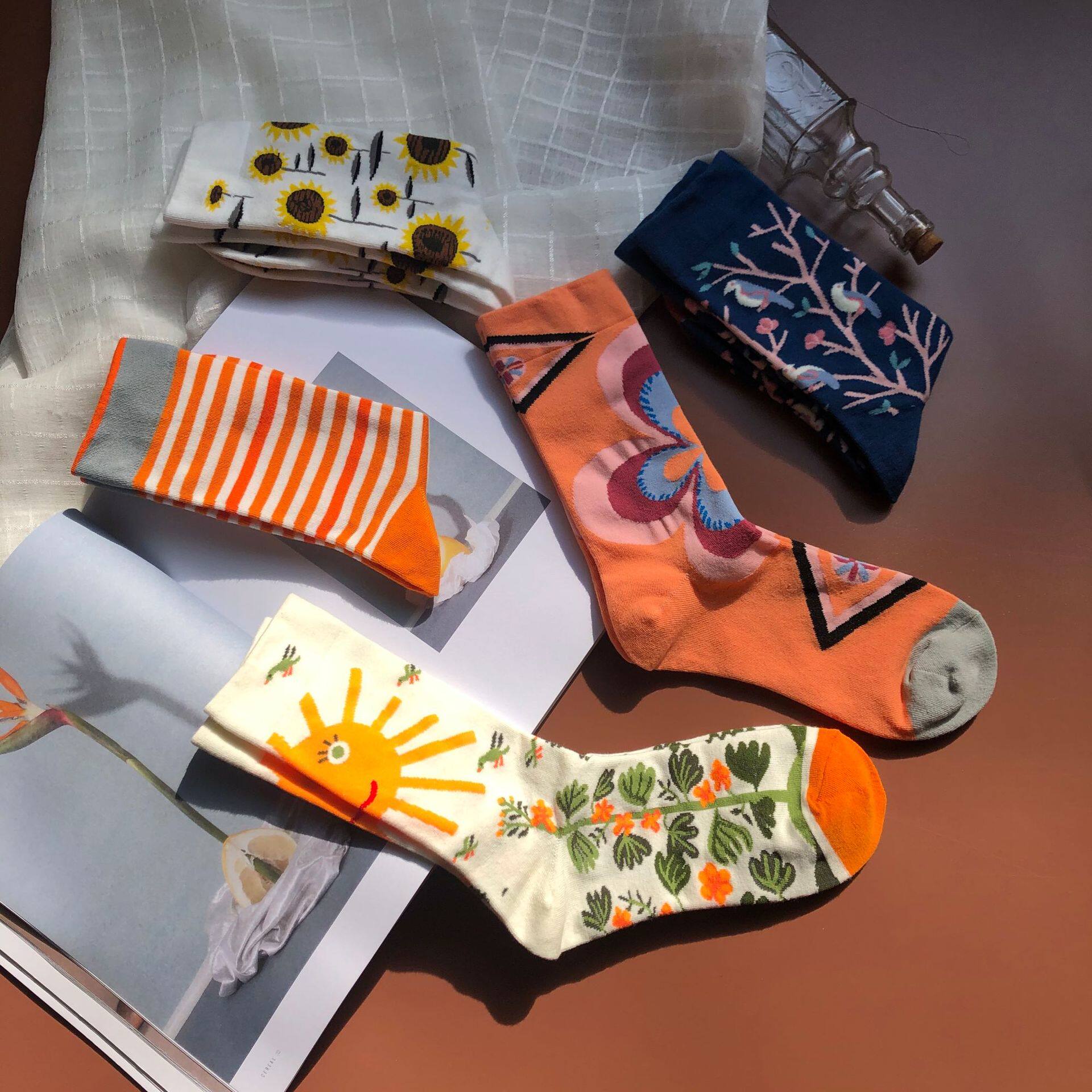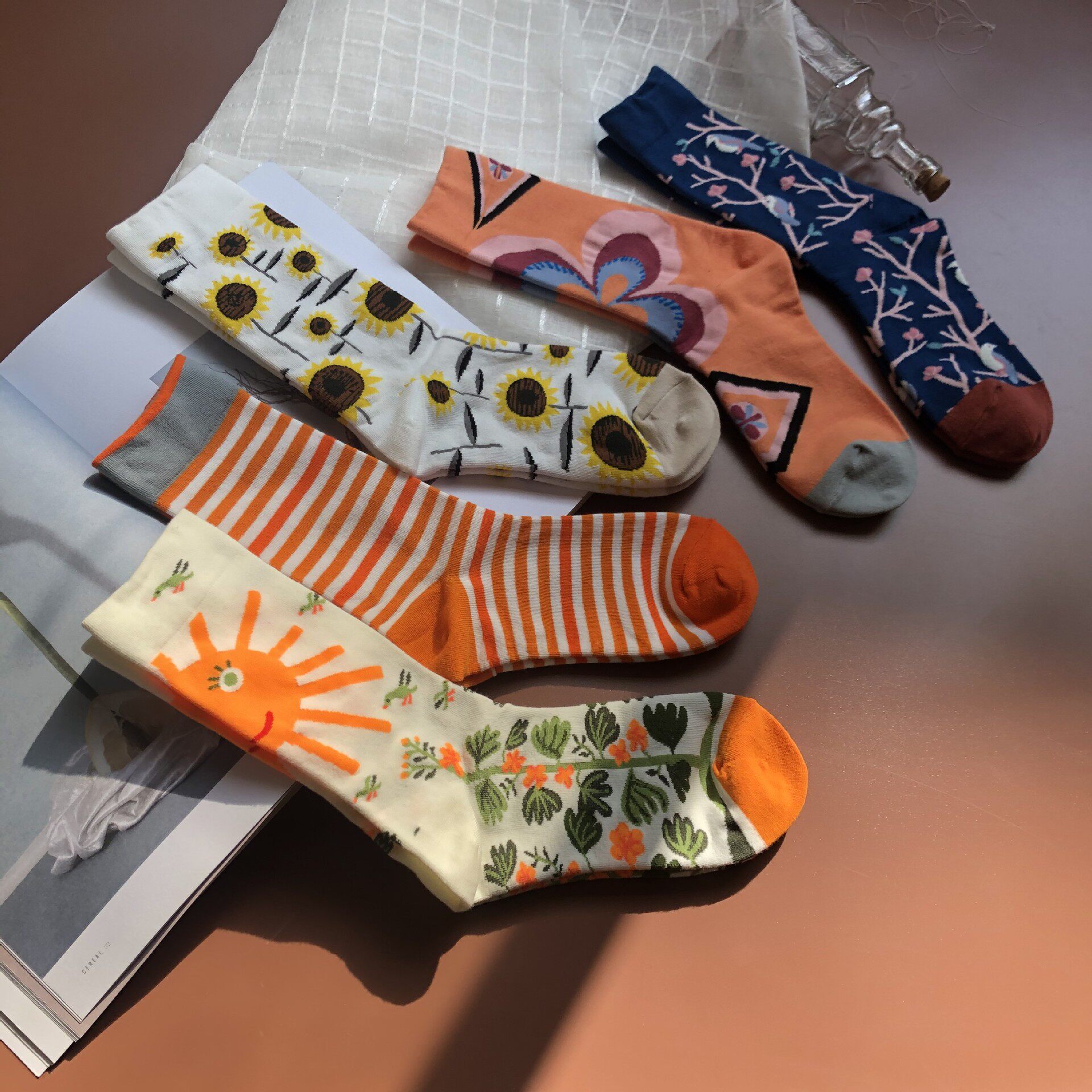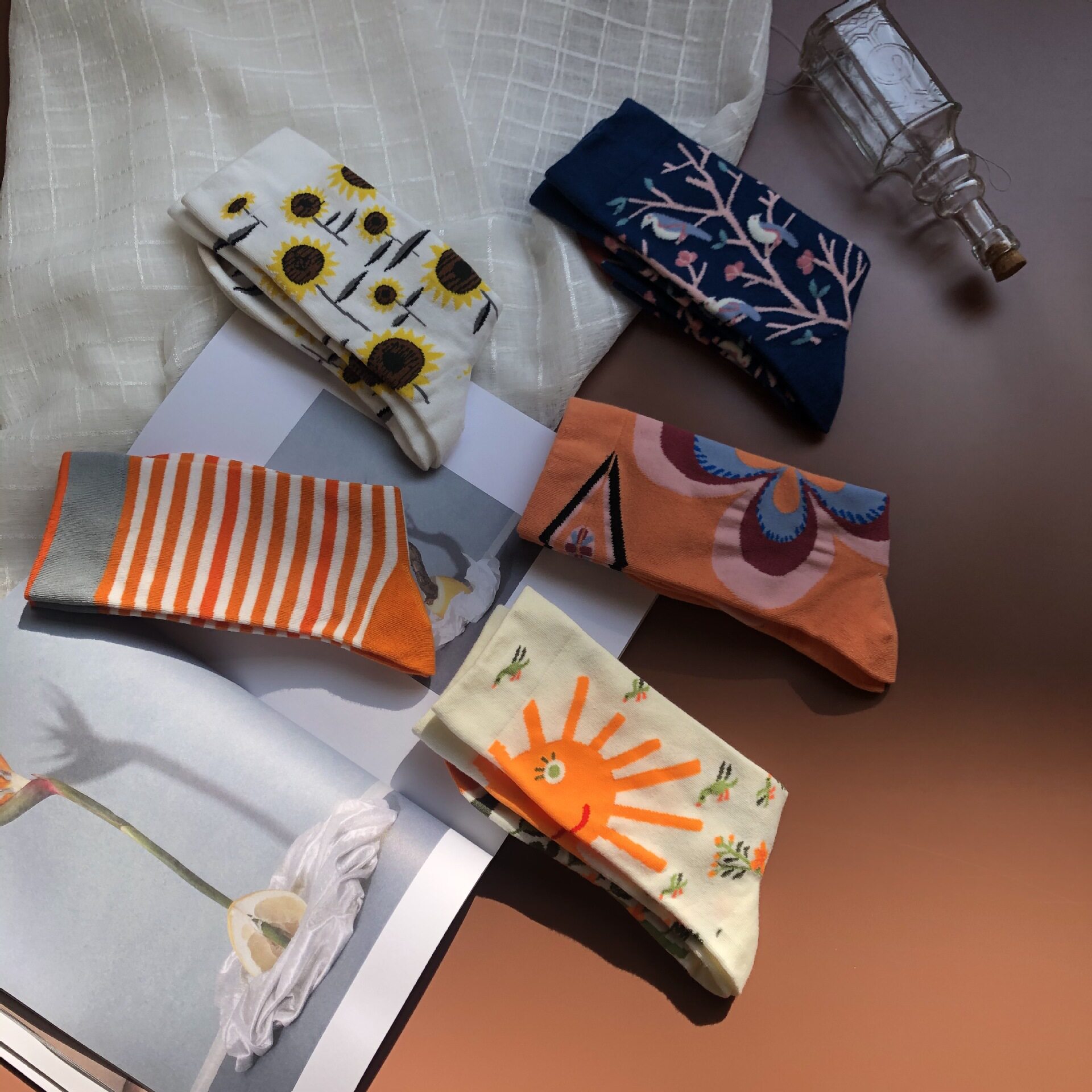 2022 Spring illustrations Sunflower Sunflower Plant Flowers Art in Silo Women Socks French Striped Cute Tide Socks