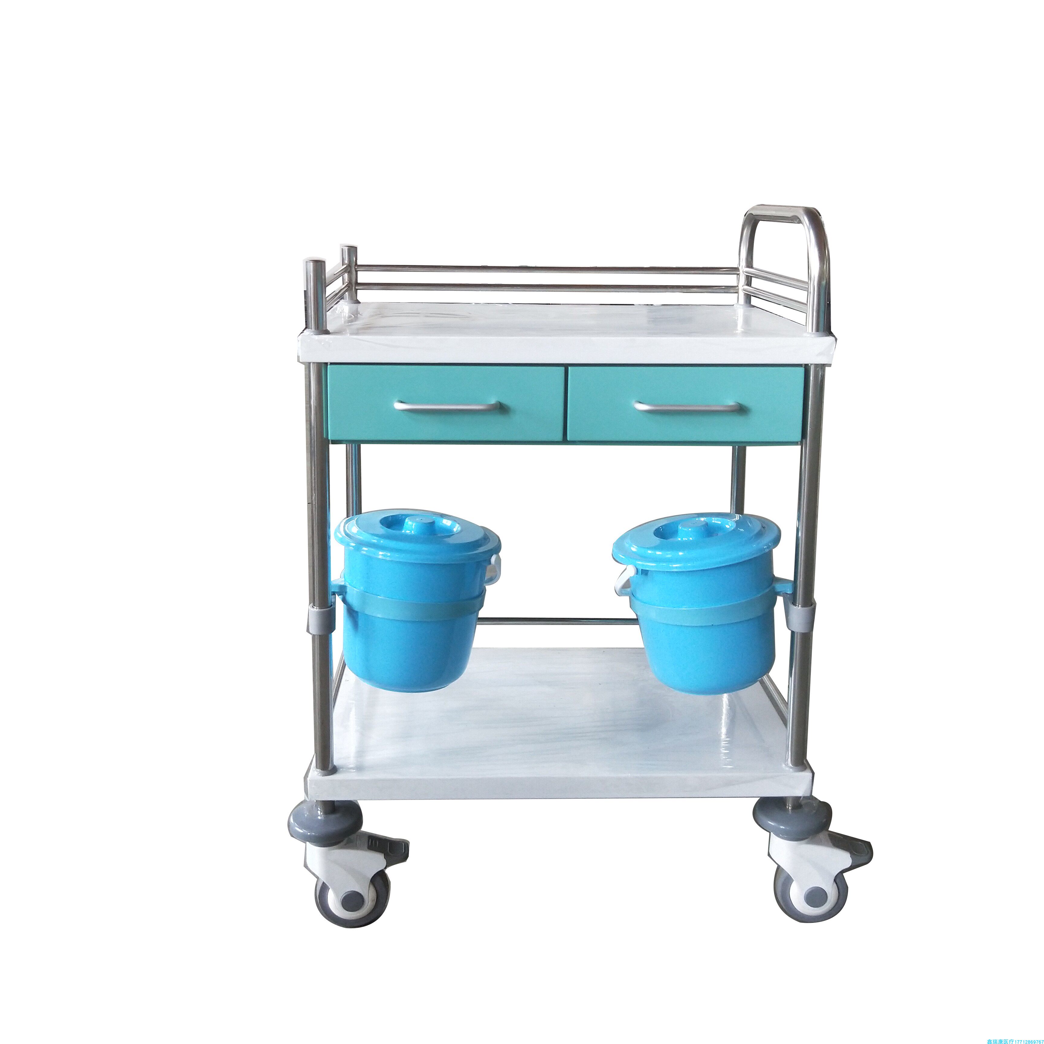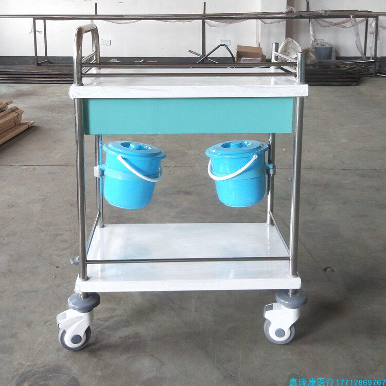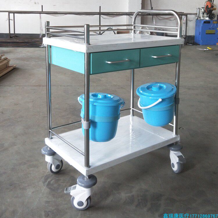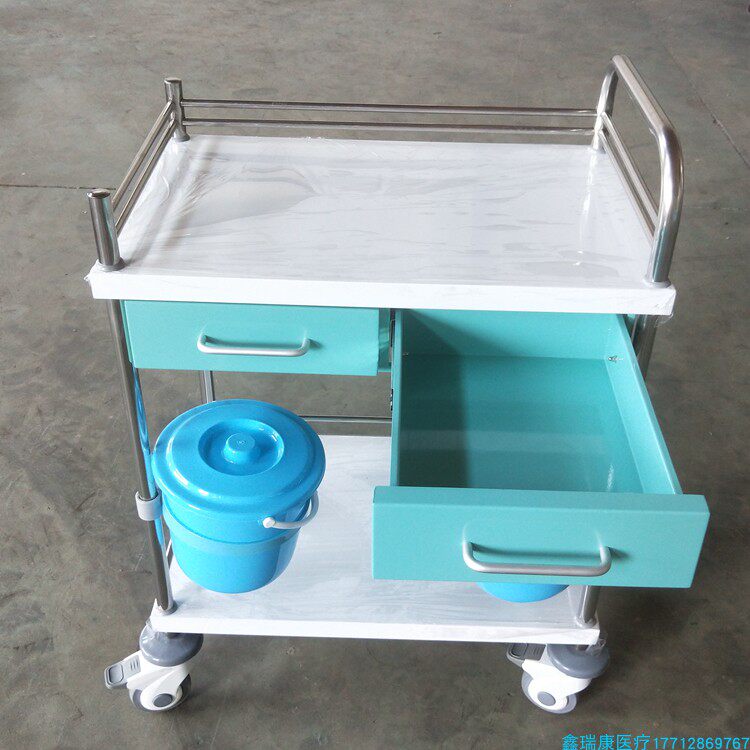 Manufacturer booked Nursing College Stainless Steel Care Car Steel Spray Plastic Treatment Car Double Drawer Double Care Trolley