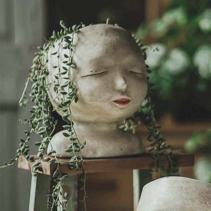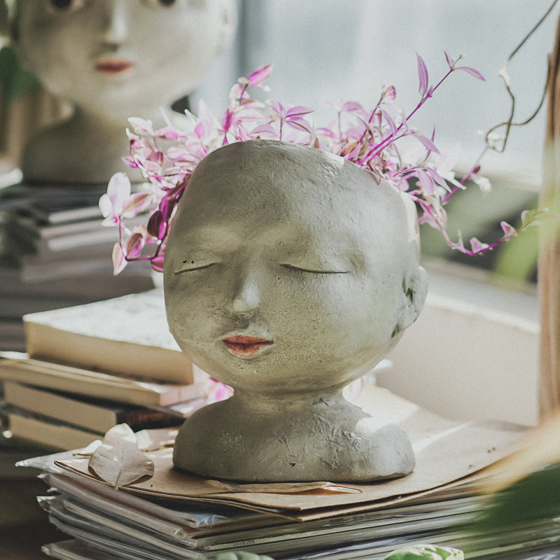 Flowers bloom Mantra meditation girl portrait pot garden old creative resin planting flower plant flower utensils