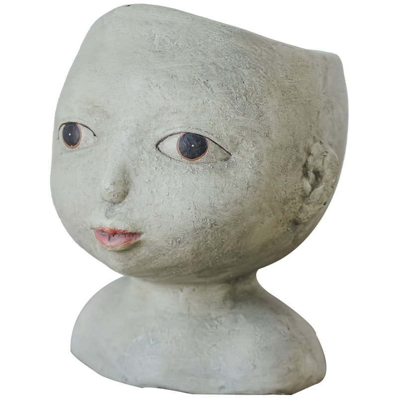 Girl closed eyes head like a flower pot Girl open eyes head like a flower pot