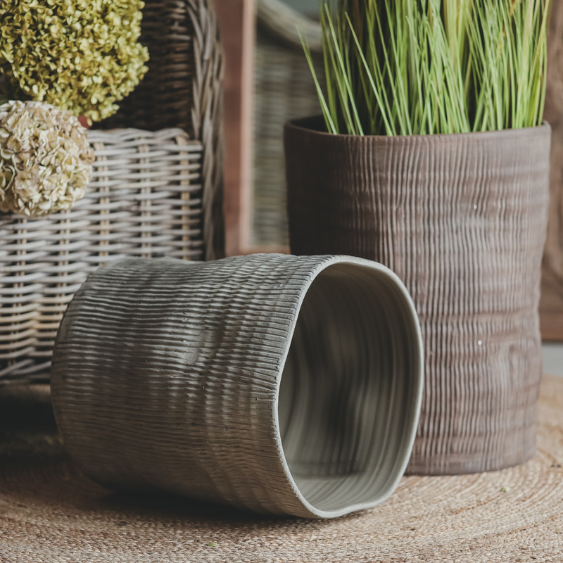 Flowers open Rubens flow line flower pots grey vertical stripe Living room Tears large number ceramic Nordic flower pots on floor