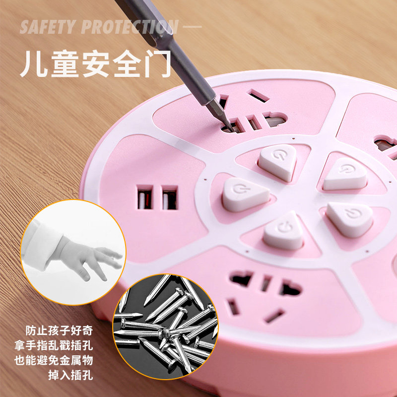 Fruit Pan Round Creative Multifunction Socket with safety door USB Smart insert Independent Switch Control Power Patch wall Home Home Platoon Extension Cord Extension Cord Small Night Light
