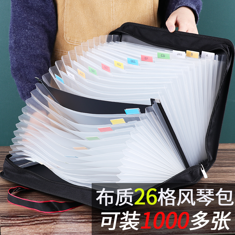Canvas large capacity organ bag folder Multi-level students use 26 layers of hand-held test paper clips to store classified file bags