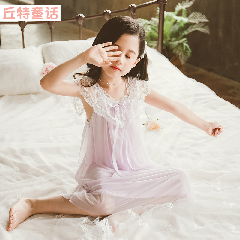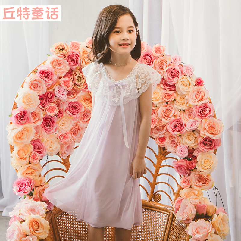 Girl Short Sleeve Super Slim Fairy Sleeping Dress Summer Children Lace Pajamas Dress Little Girl Sweet baby Home Home Clothing