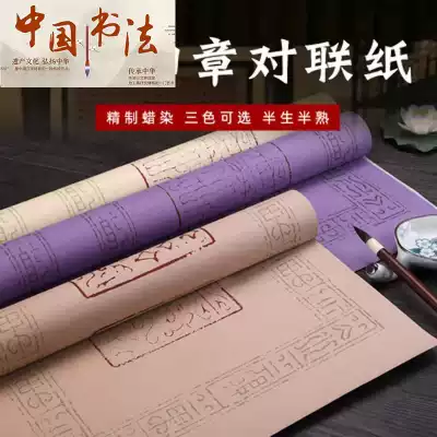 Four-foot whole piece of retro batik rice paper semi-cooked seven words, Wadang couplet works paper brush calligraphy creation