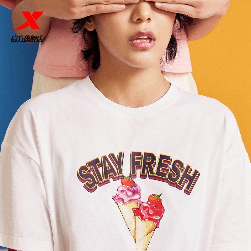 Xtep T-shirt women 2020 summer new sports short jacket half sleeve loose round neck T-shirt