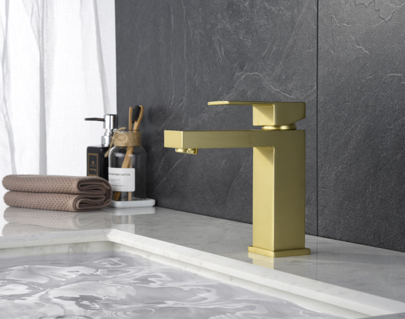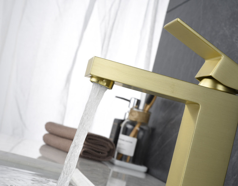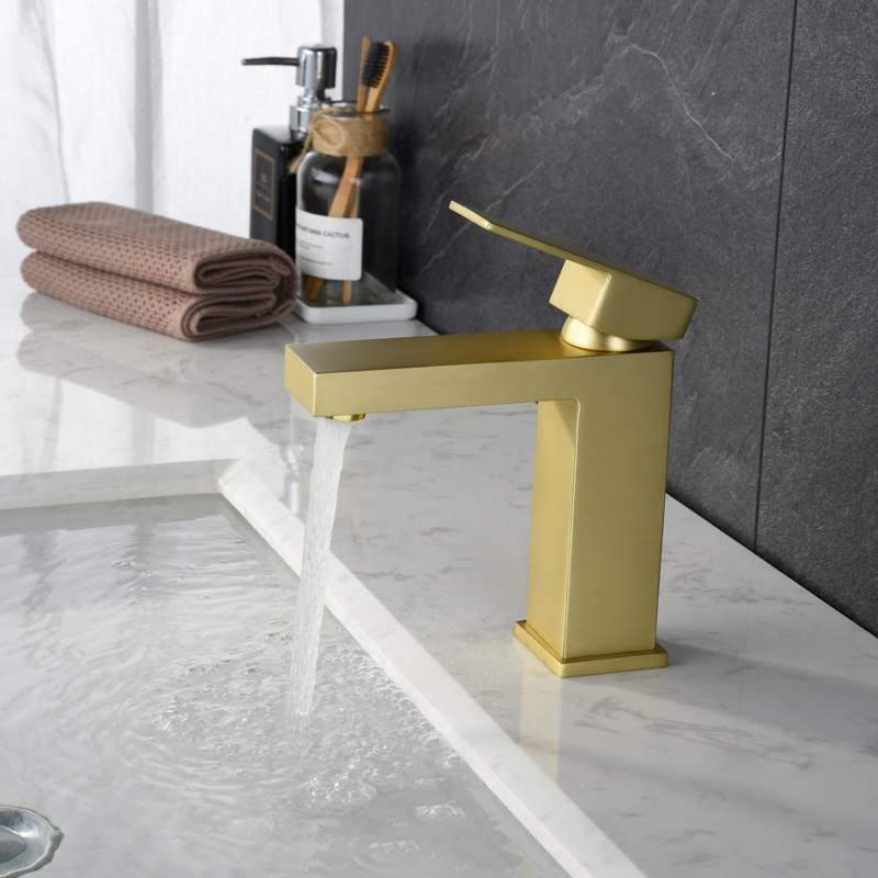 Brushed Gold Basin Square Faucet Hot and Cold Brass Bathroom Dressing Room Overcounter Basin Undercounter Basin Washbasin