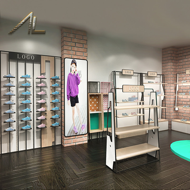 Customized shopping mall shoe store shoe rack display rack on the wall with light display cabinet in the island rack stainless steel wrought iron shelf showcase
