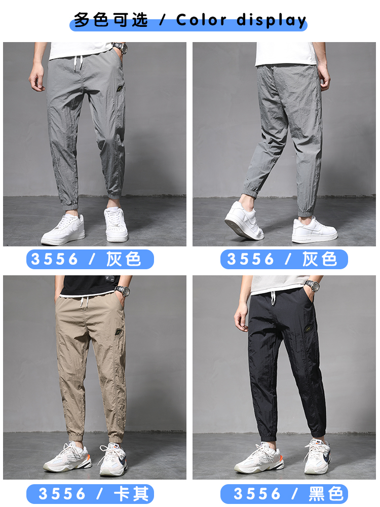 Boys' casual nine-point pants summer ice silk sports trousers all-match loose elastic youth men's trousers trend