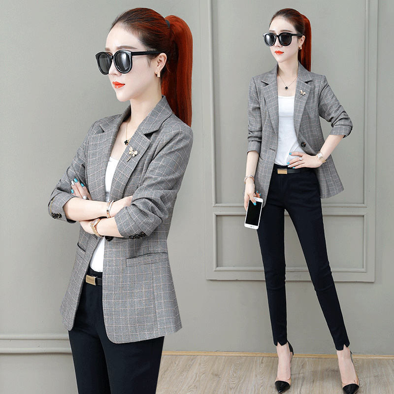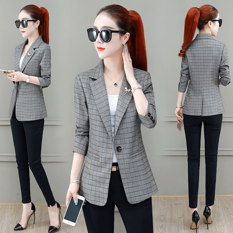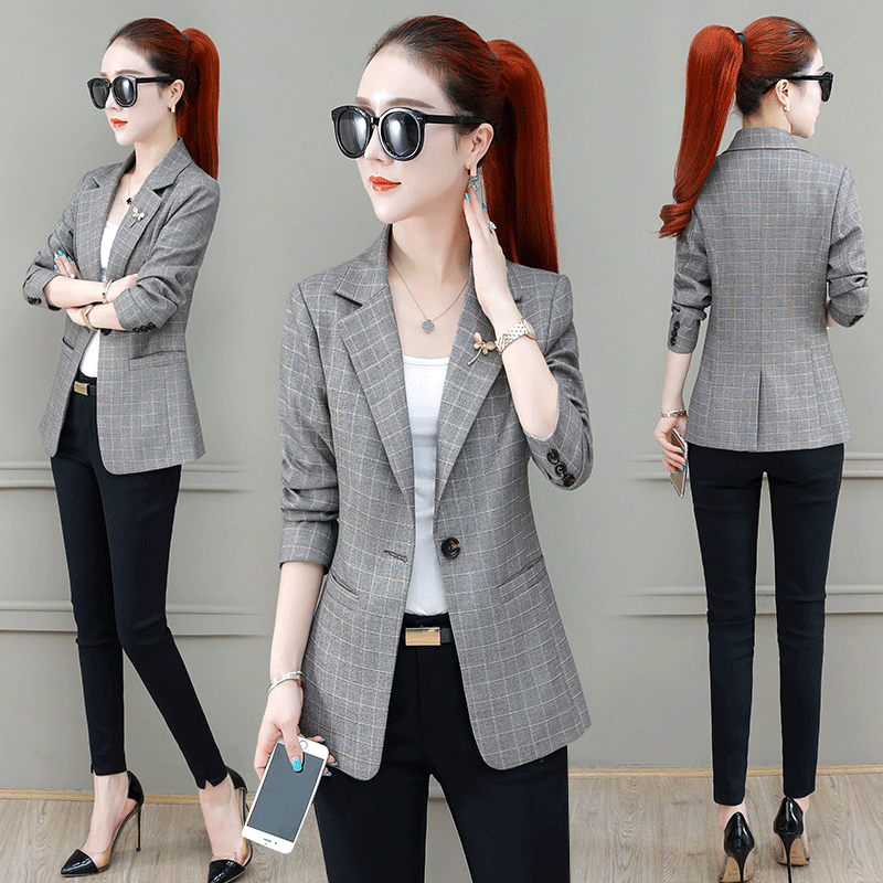 Early spring white plaid small suit jacket women 2020 new spring and autumn wear thin coat February August leisure suit