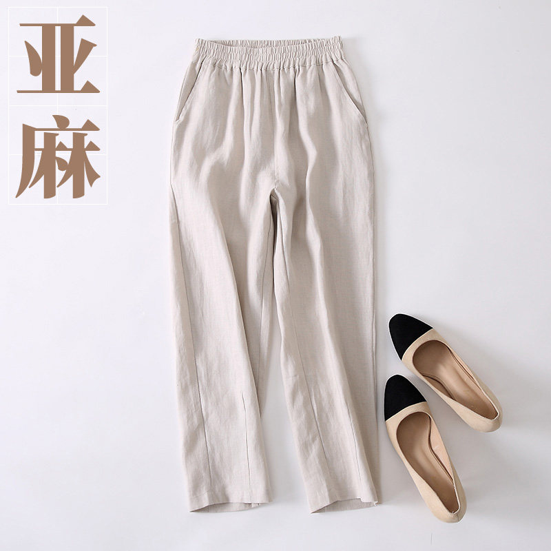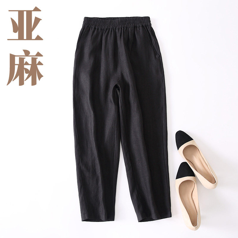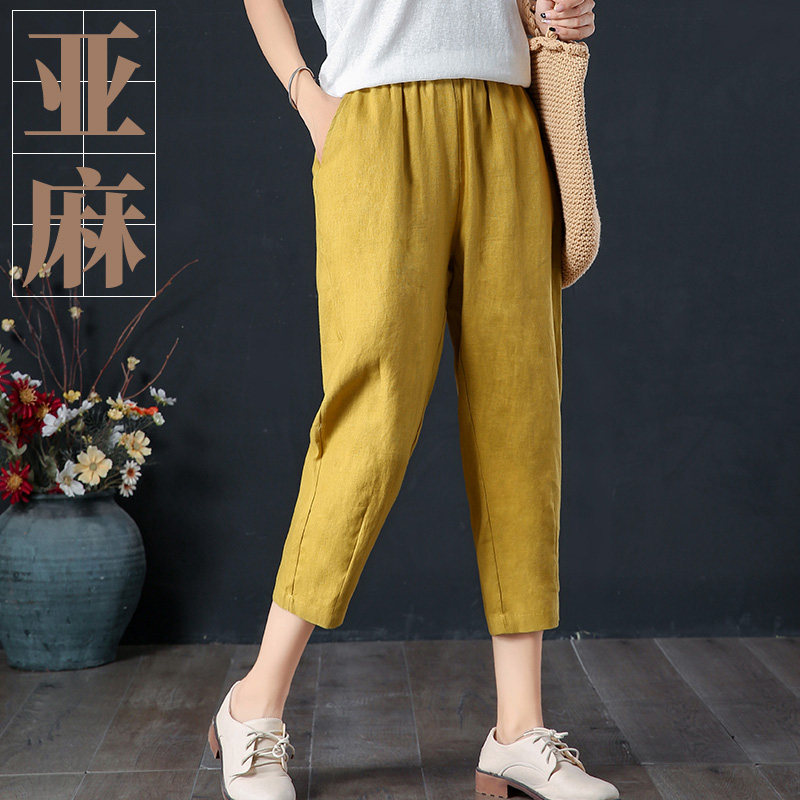 Net red spring and summer linen Harlan pants nine points radish pants women's summer loose linen casual pants thin large size women's