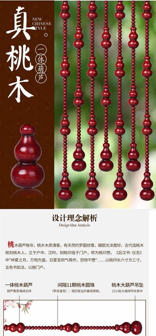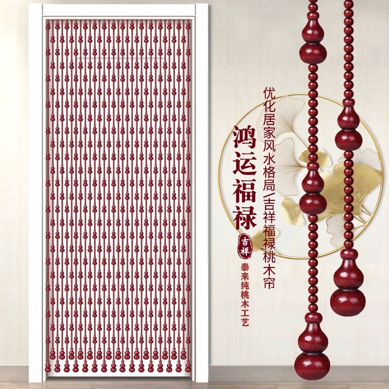 Door Curtain Peach Wood Hyacinth Pearl Curtain Partition Curtain FENG SHUI DOOR CURTAIN LIVING ROOM TOILET MAKE-UP ROOM BEDROOM SEMI-CURTAIN ARC ARCH