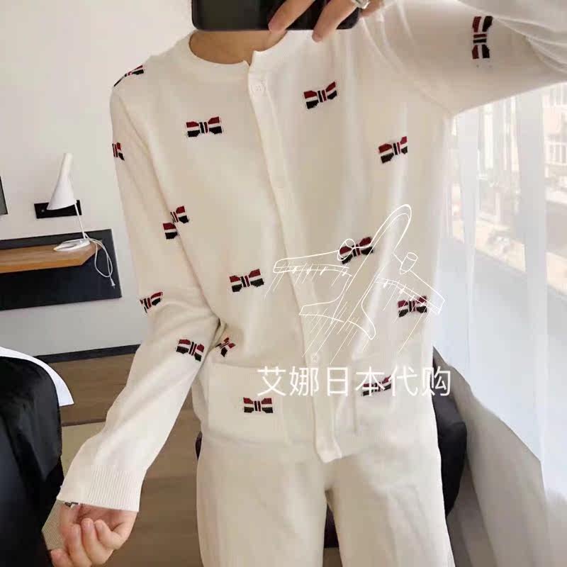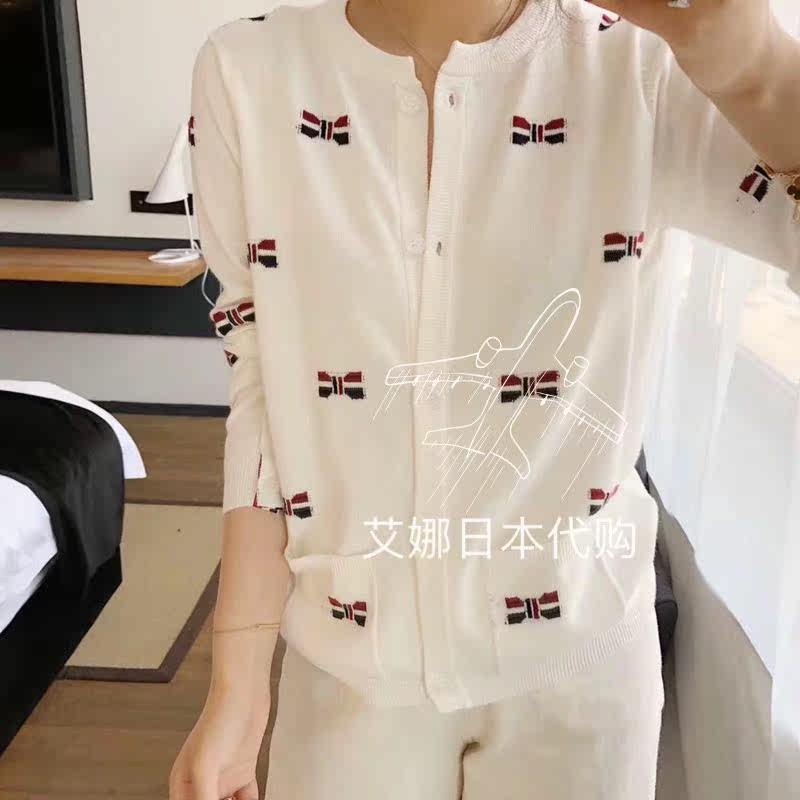 Aina Ridai Thom Brown 20 spring TB sweater color cardigan bow print sweater women's coat