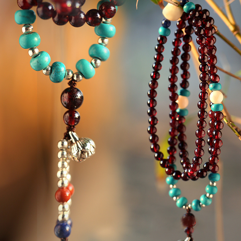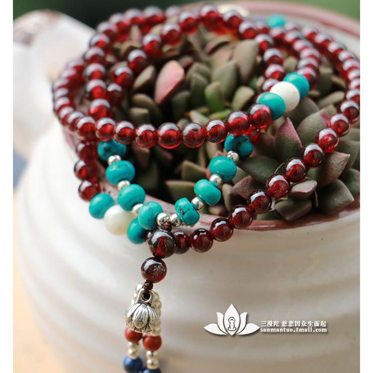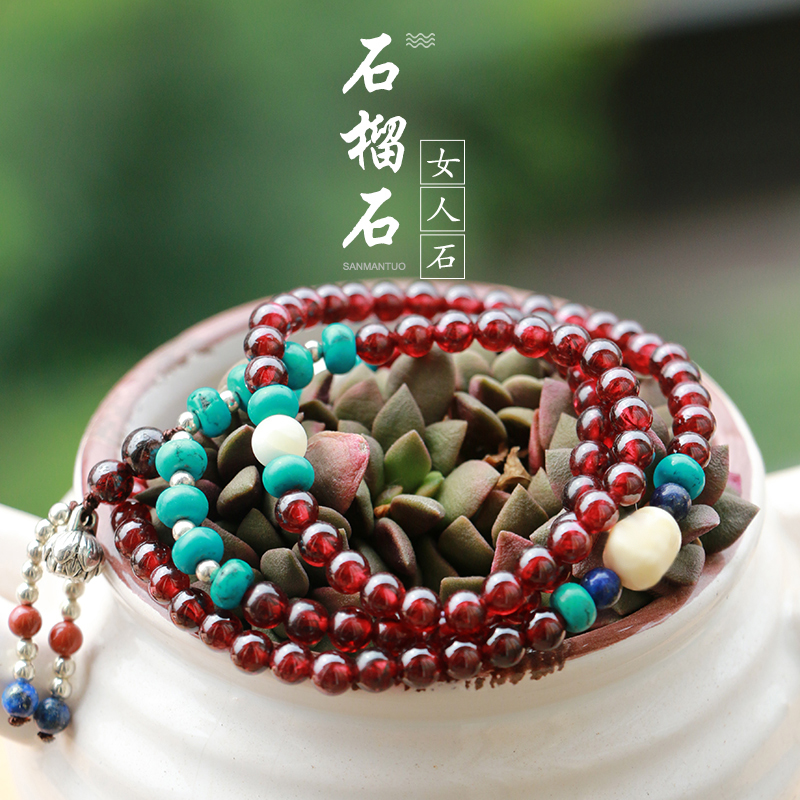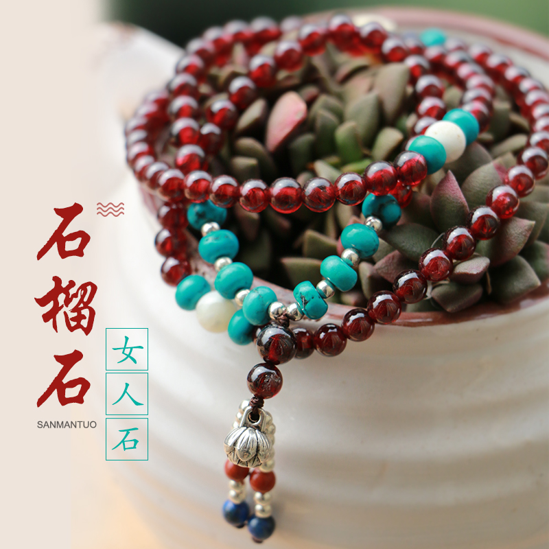 Natural pomegranate stone necklace bracelet (normal size) plus 108 (large size)