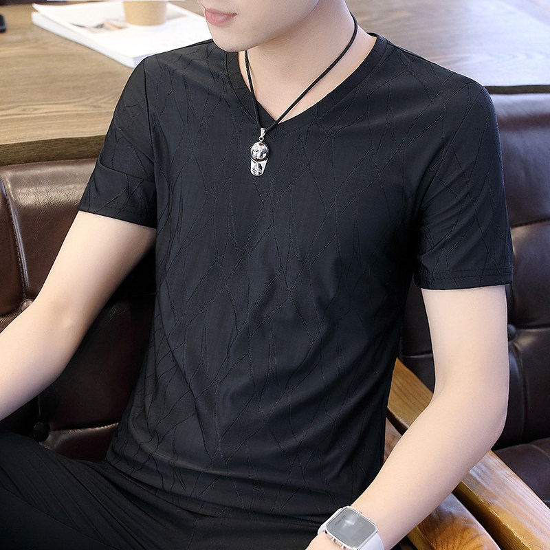 New Korean men's summer short-sleeved V-neck ice silk all-match men's fashion youth T-shirt thin trend loose