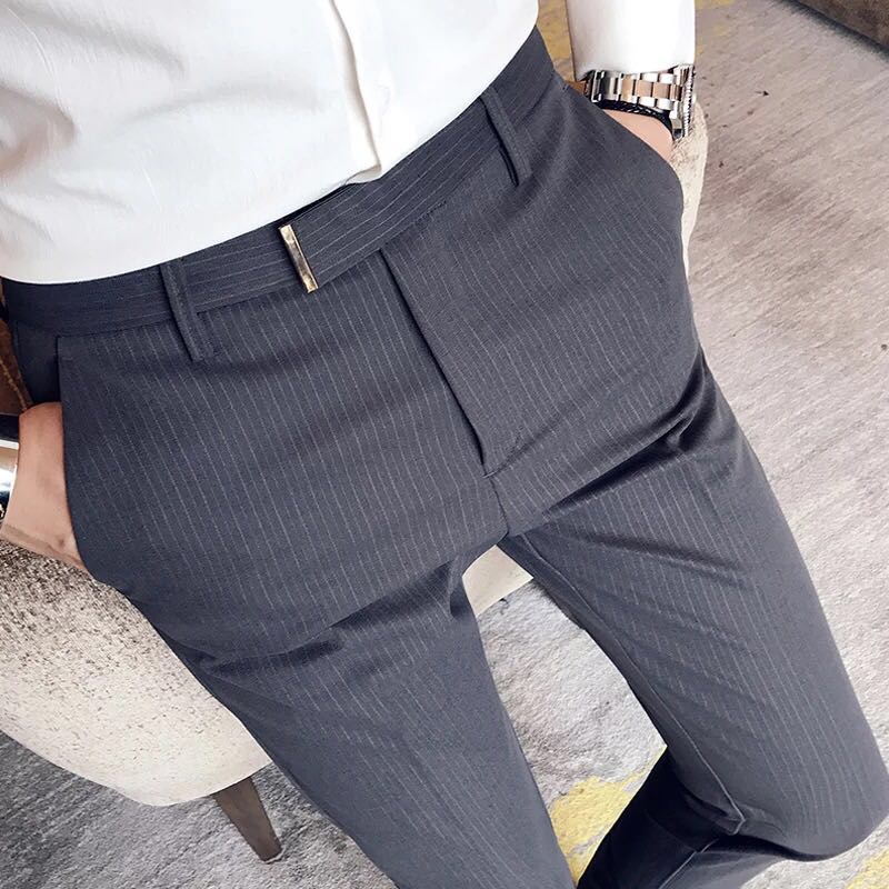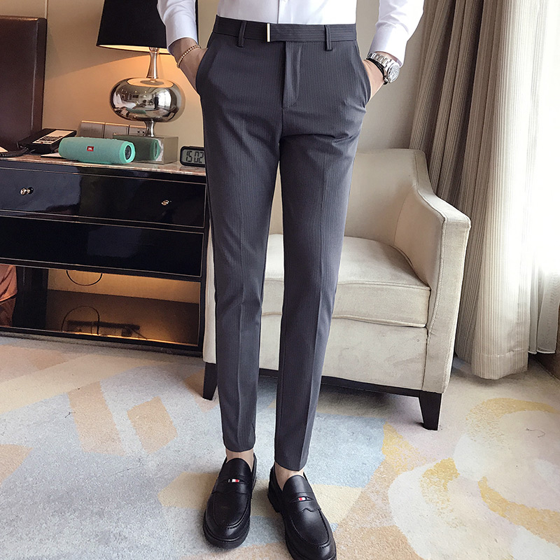Spring and summer trendy business casual pants Korean version of slim-fit pencil pants men's personality stripes all-match trousers men's trousers