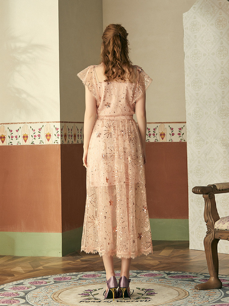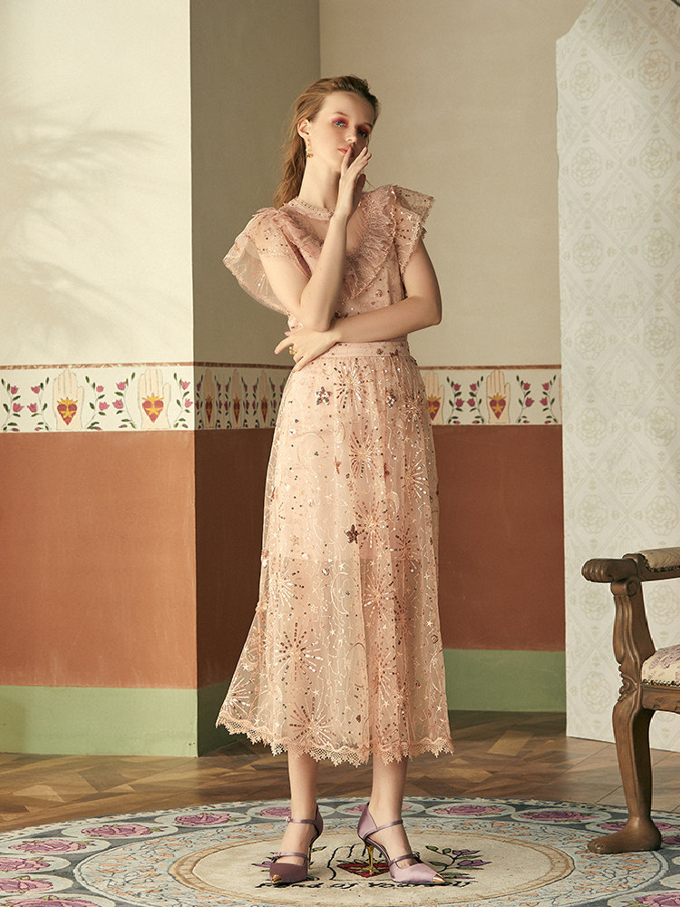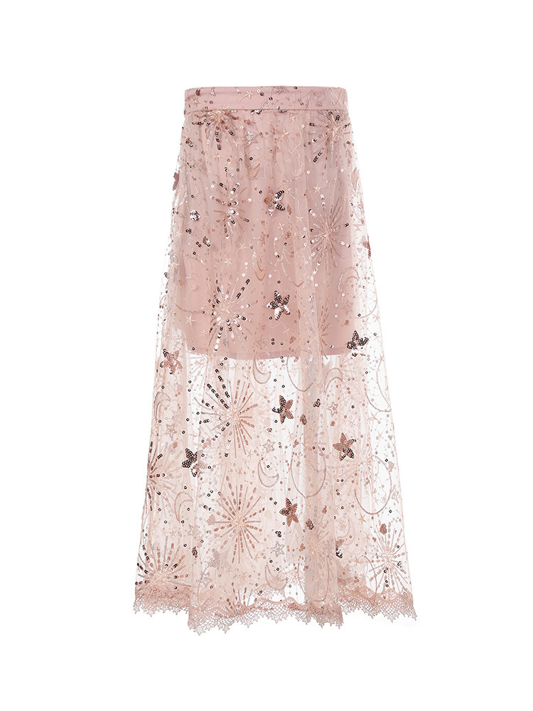 MAXRIENY spring temperament sequined lace skirt women's mid-length gauze skirt fairy skirt foreign style