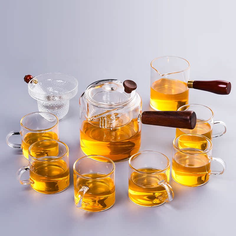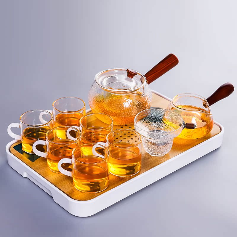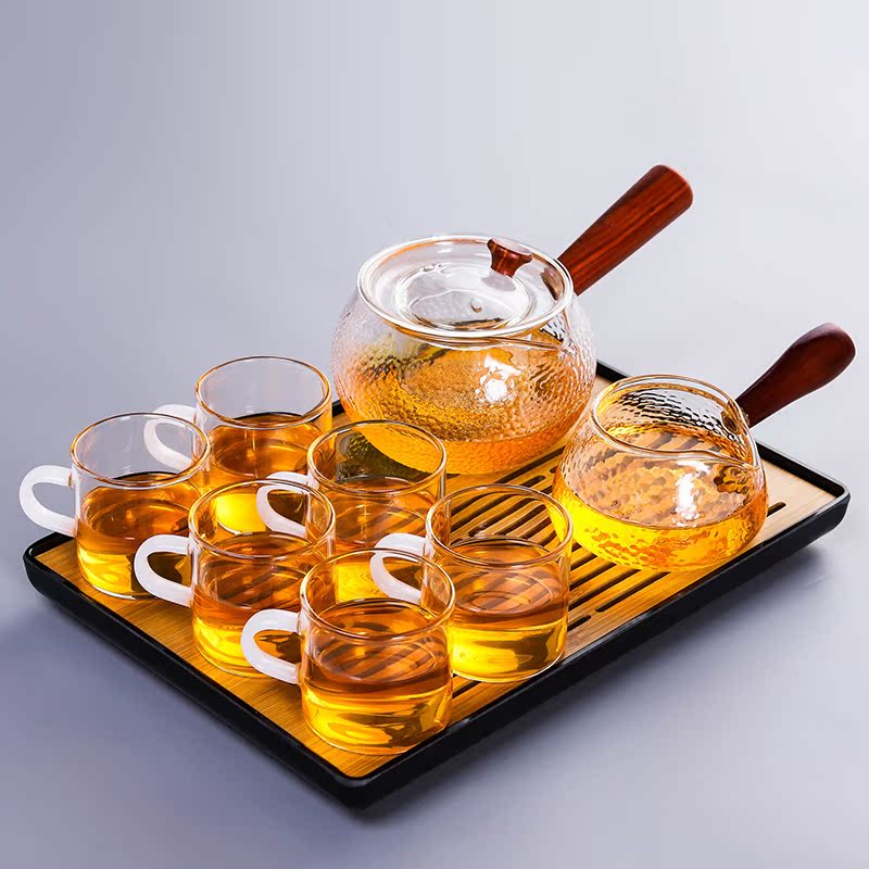 Hammer pattern glass Gongfu tea set Household Japanese simple flower tea cup high temperature side handle pot tea set heat resistance