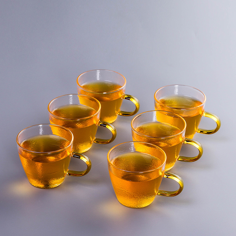 Hammered cup 100ml Six cups jade white cup 90ml Six cups gold cup 90ml Six cups transparent cup 90ml Six cups straight side handle pot 450ml set 7