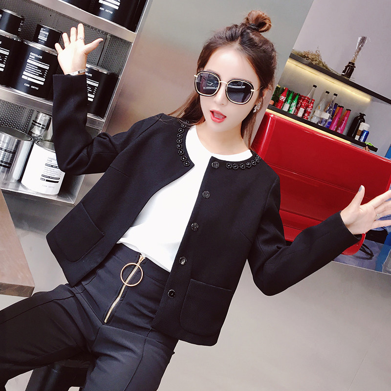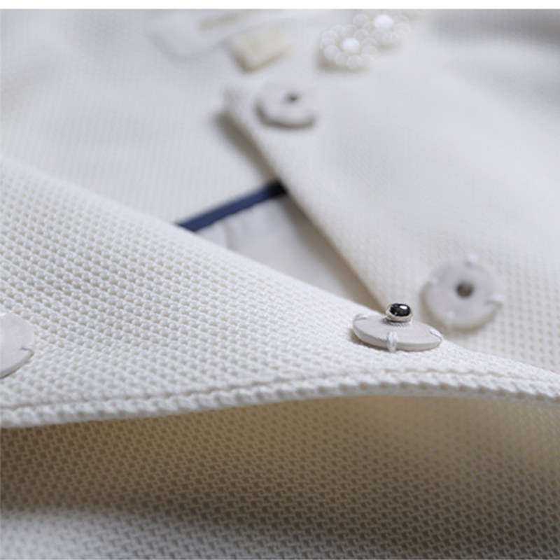 2021 Spring and autumn new blouses maiden name Yuan Xiao Xiangfeng white short Staple Pearl Round Neckline Jacket Korean version Temperament Woman