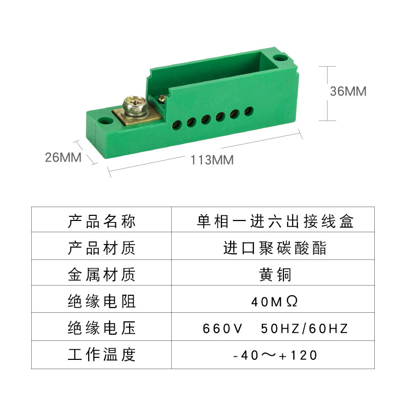 One-in-six-out terminal fj6 meter box distribution box terminal block single-pole 6-out connector branch box