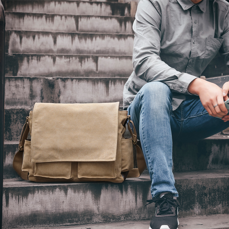 Inscriptions Canvas Bag Men's Single Shoulder Bag SHOULDER BAG CROSS Slanted Satchel Bag men's bag Fuchsatchel Ancient Satchel Casual Minimalist