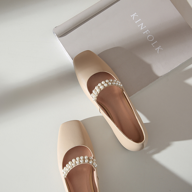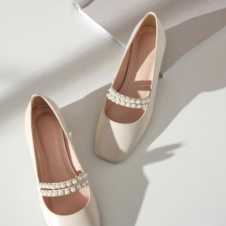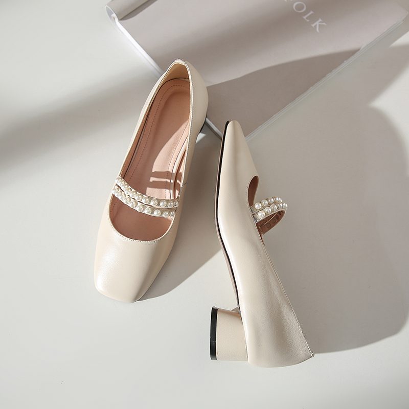 Rough heels single shoes woman 2020 autumn new Mary Pearl Pearl Hundred Middle Slippers