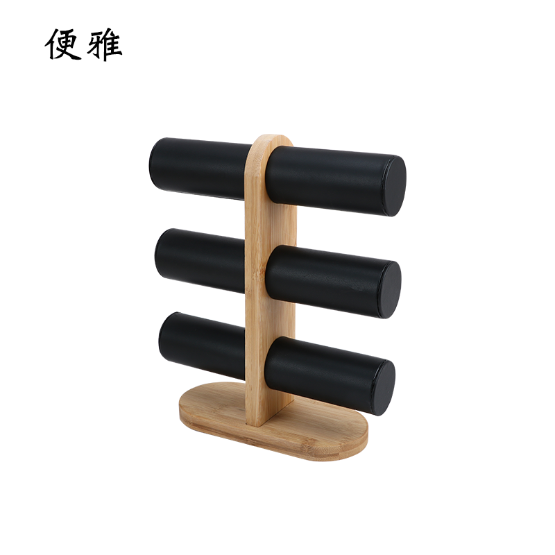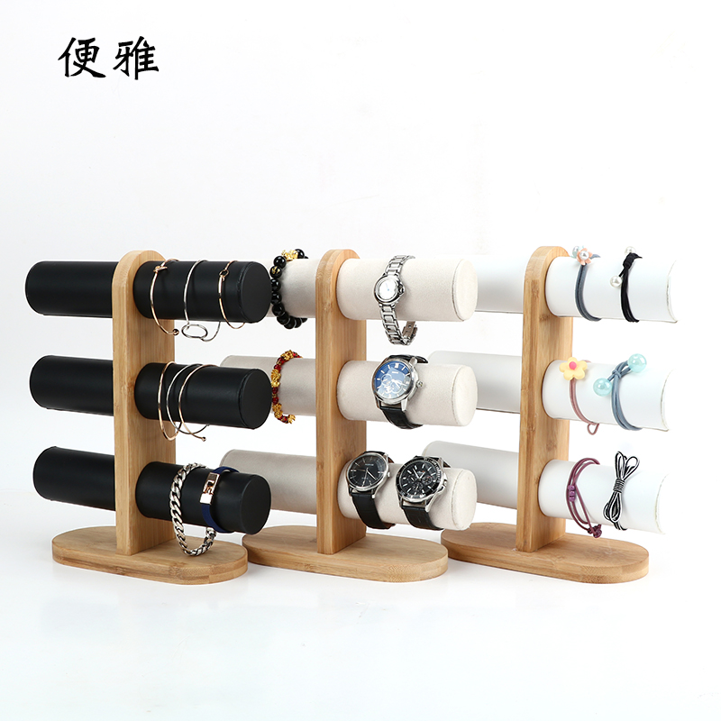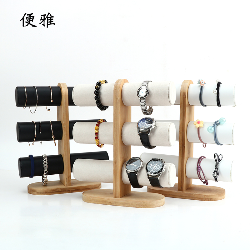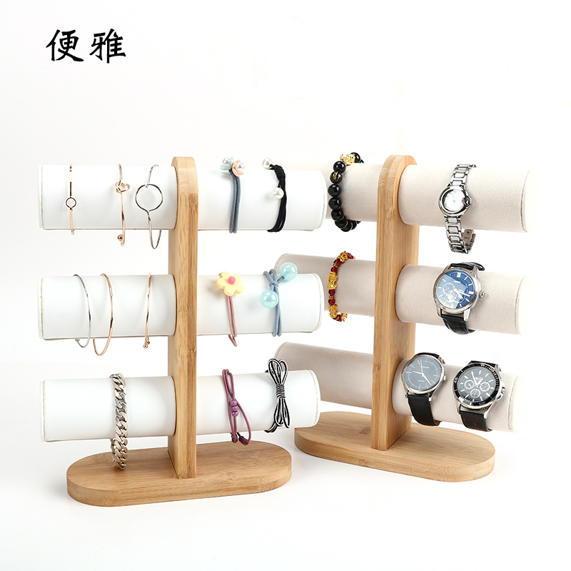 Elegant bamboo wood vertical three-layer bracelet Bracelet Bracelet Bracelet Handmade Containing Layer Shelf Jewelery Counter Display Shelf