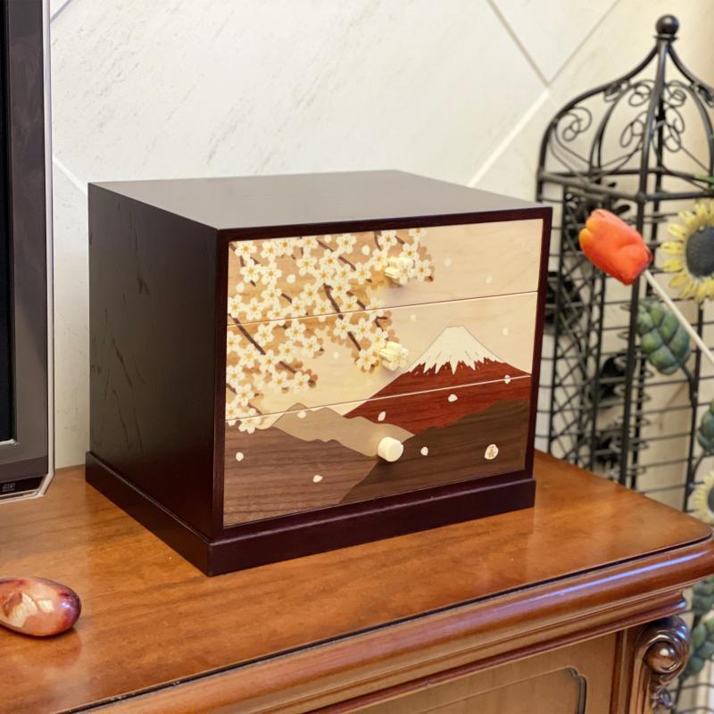 Japanese box root pinning fine work day style wood inlaid solid wood three-layer storage cabinet retro drawer for containing small bucket cabinet